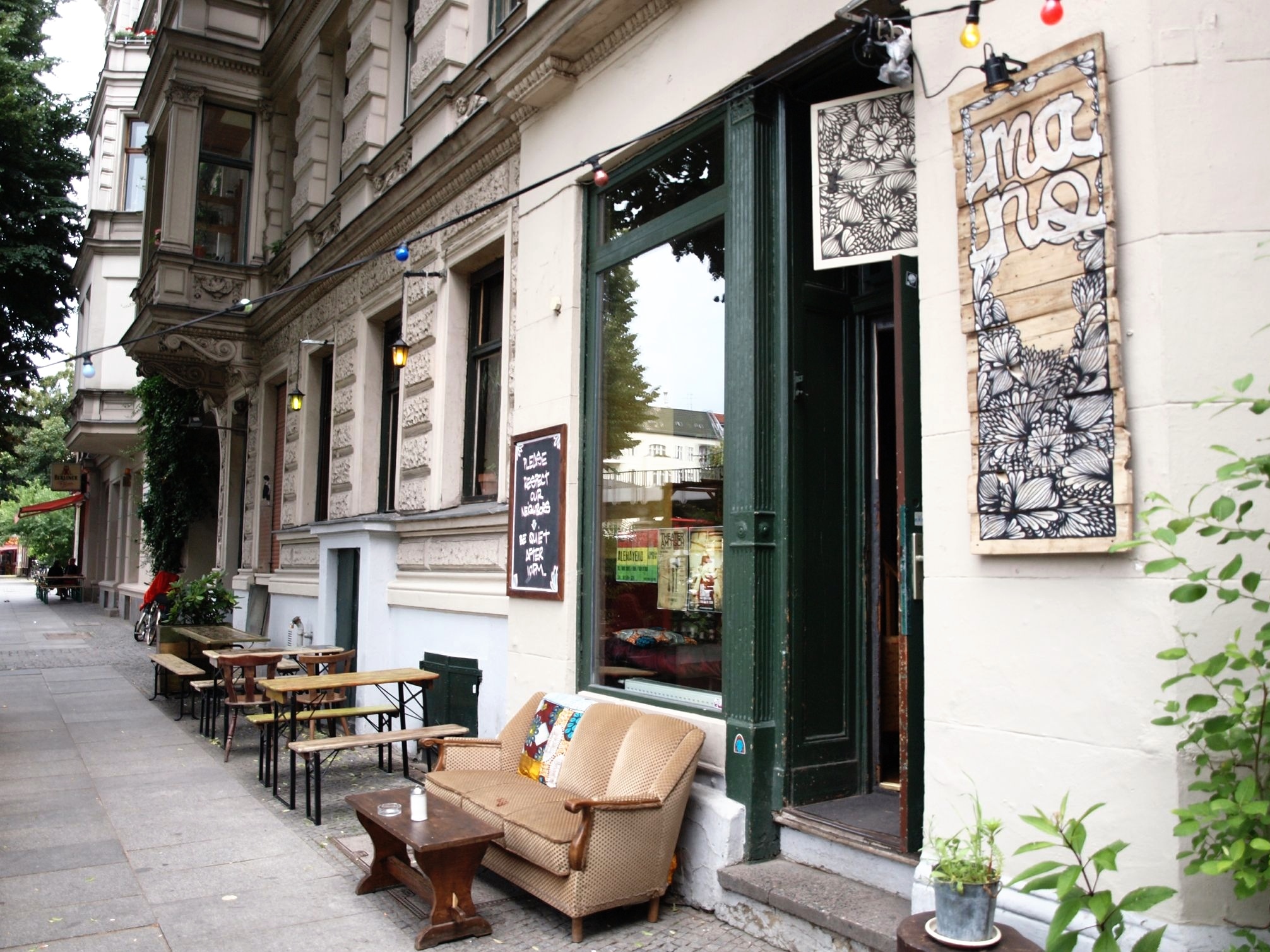 A few streets along lies ‘Die Rebellion des Zimtsterns’ (The Rebellion of the Cinnamon Star), where you can cure your craving for something savoury. The menu changes daily, but you can be sure that everything is either vegetarian or vegan, and healthy yet delicious. After wandering the streets in search of food, what could be better than a coffee on a cosy couch whilst watching the people go by? At ‘Café Mano’ you can chat over a cappuccino, overlooking one of the main streets in Kreuzberg, Skalitzer Straße. Not far away is Görlitzer Park, where sitting down to listen to some street music is a great way to end a day in the neighbourhood, accompanied by some shawarma from ‘Falafel Berlin’ with tahini and tabbouleh, as you watch the sun go down over Kreuzberg.