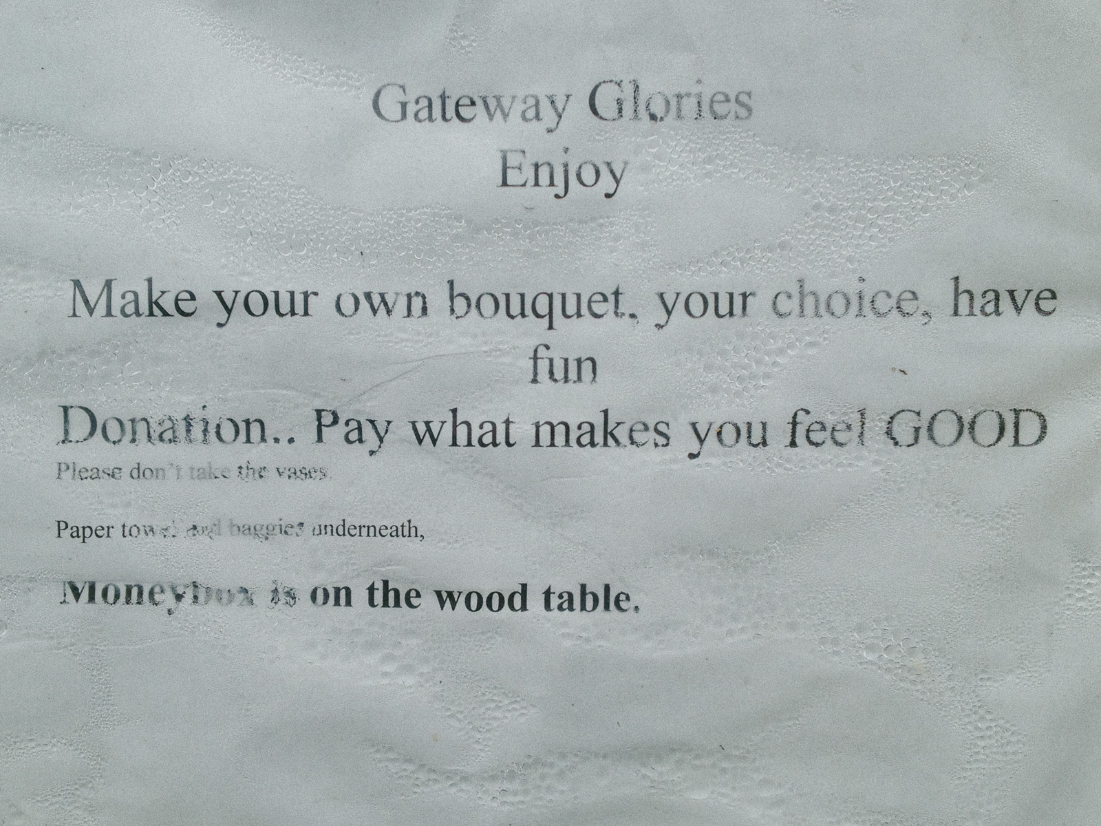 But my favourite roadside find so far? “Pay what makes you feel GOOD.”