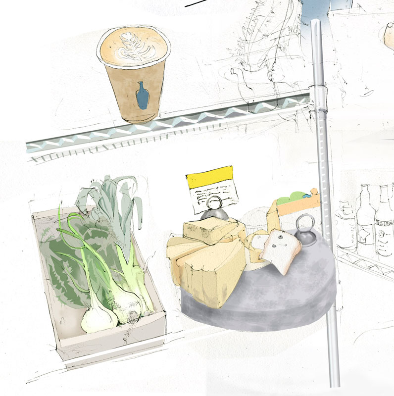 All Good Things is a small heaven. A romantic store if there ever was one – you are met by a florist, then a Blue Bottle Coffee shop, then a bakery, a butcher’s, cheese, fish, groceries, sweets and a restaurant in the back.