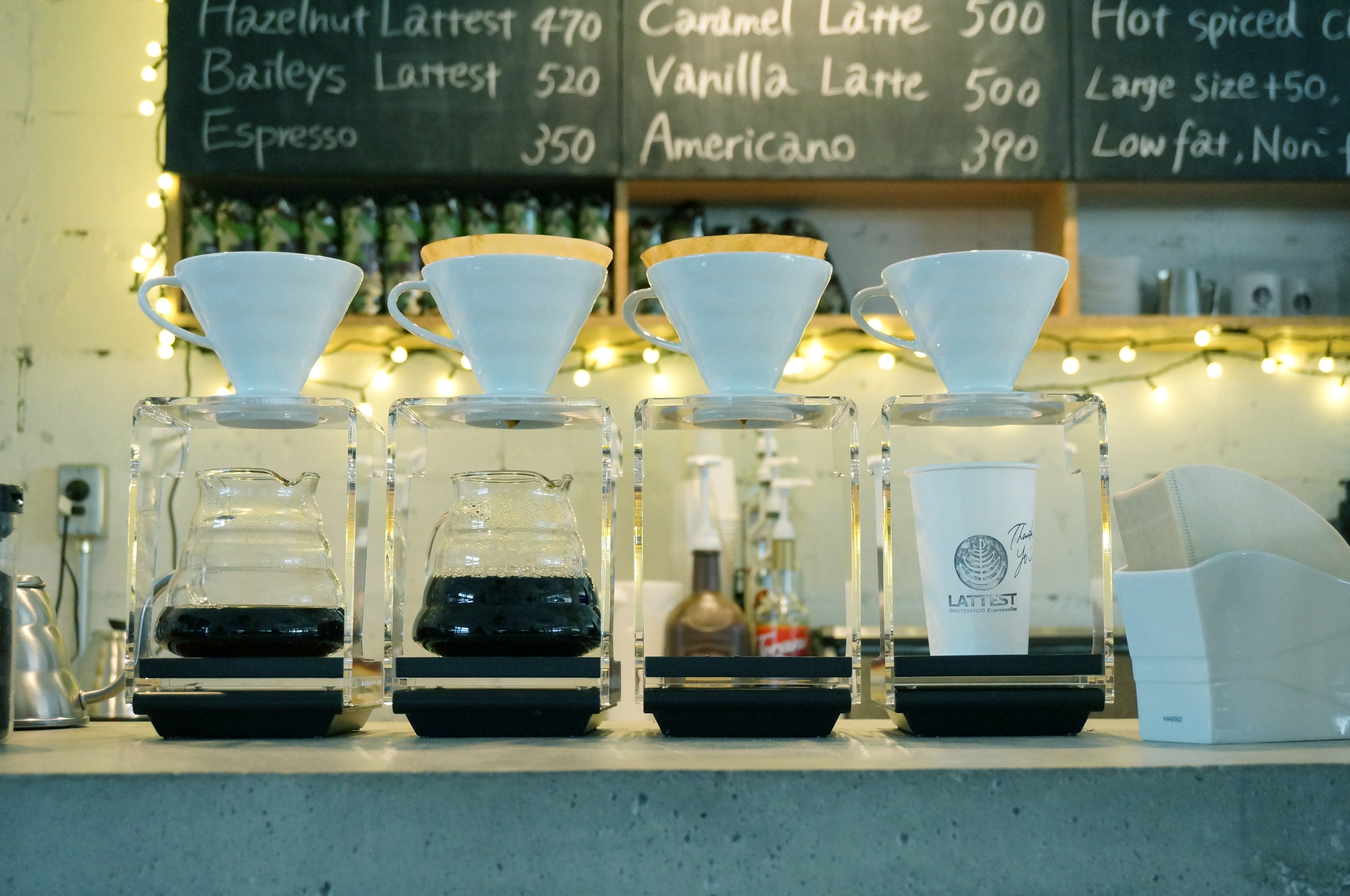But until then, why not visit the current talk of the town? Hario – the Japanese manufacturer of the white ceramic cone, and the darling du jour of baristas from San Fransisco to Berlin and beyond – has left the factory for a limited run collaboration with the coffee shop LATTEST.