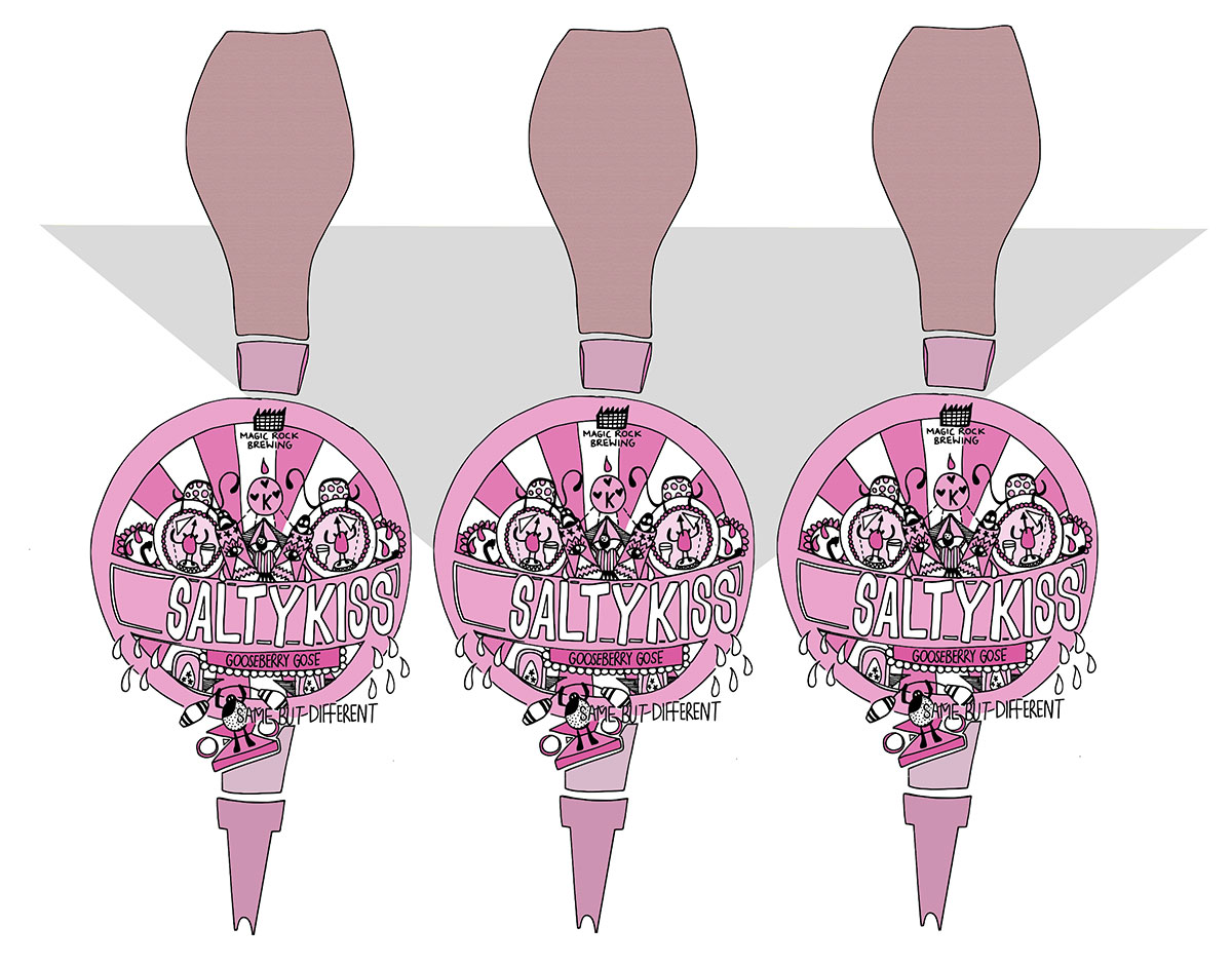 Over in Yorkshire one of the most distinctive and forward thinking new breweries, Magic Rock, are perfecting Goze beer. The style originates in Leipzig and was somewhat mysterious, it took an Italian brewer, Giada Maria Simone, to come to Huddersfield to revive it. Goze is a spontaneously fermented wheat beer that has a salty tang alongside the sourness – originally a result of spontaneous fermentation alongside local water with a very high mineral content. This extra aspect makes an intriguing brew, where sour funky flavours interplay with added fruit in the form of gooseberry, grapefruit or lime, and a salty smack around the lips on the finish. The beer is called Salty Kiss.
