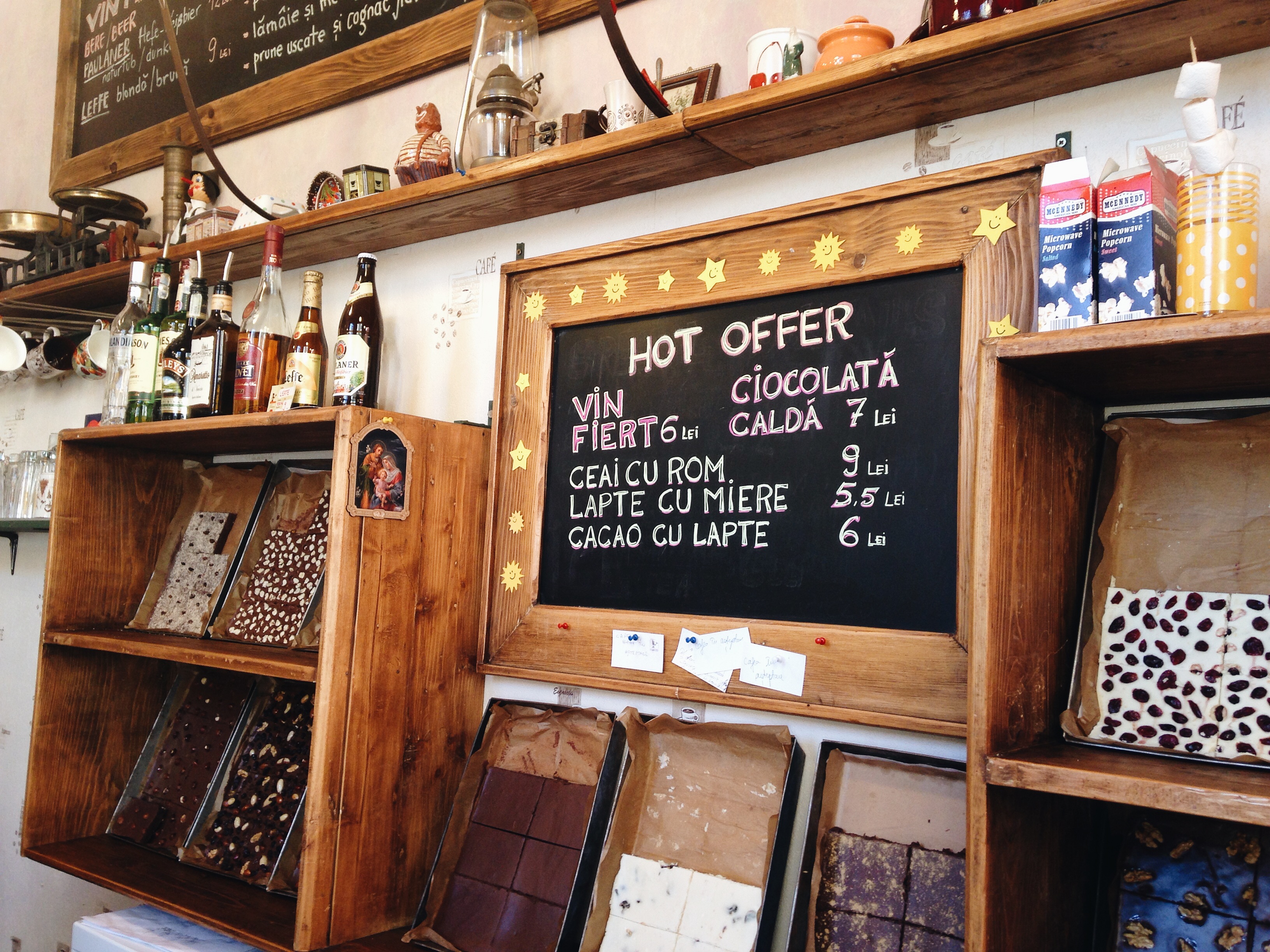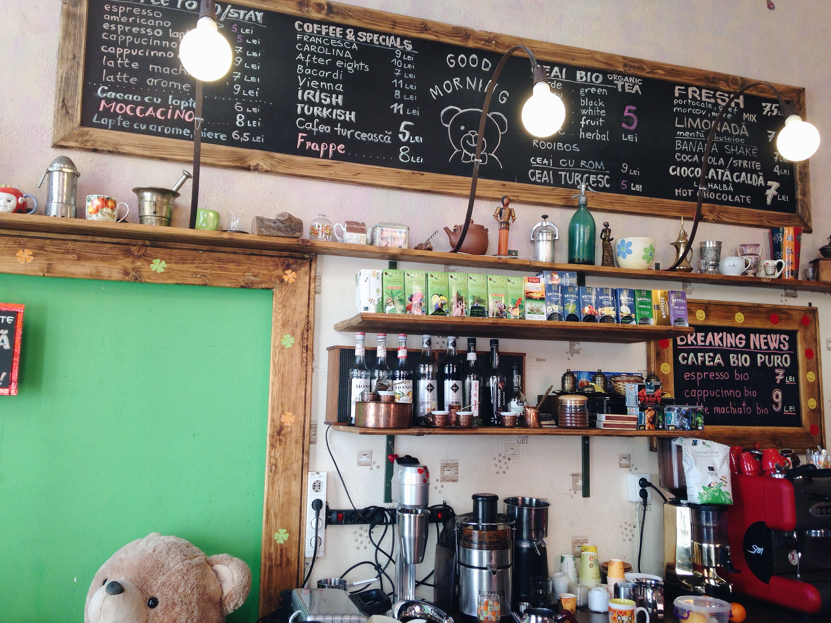 When I’m craving homemade tarts, pies and cookies Cafeneaua Francesca always obliges. I like to linger in their window tables under the strict surveillance of their mascot, Francisc the bear, that everybody, children and adults alike, loves. Their small yet cosy interior is almost entirely made of wood, which I personally love, and which gives the café a homey feeling. Some of my favourite brownies are rum and cherry chocolate, mint and lemon chocolate and nut and cranberry. The list of treats goes on, as almonds, goji, dates, vanilla and figs are braided together in deserts, reminding me of the delights my grandma used to make. Their teas, coffees and lemonades are a real treat too. I’m always reluctant to leave, but happy to return to Francesca.