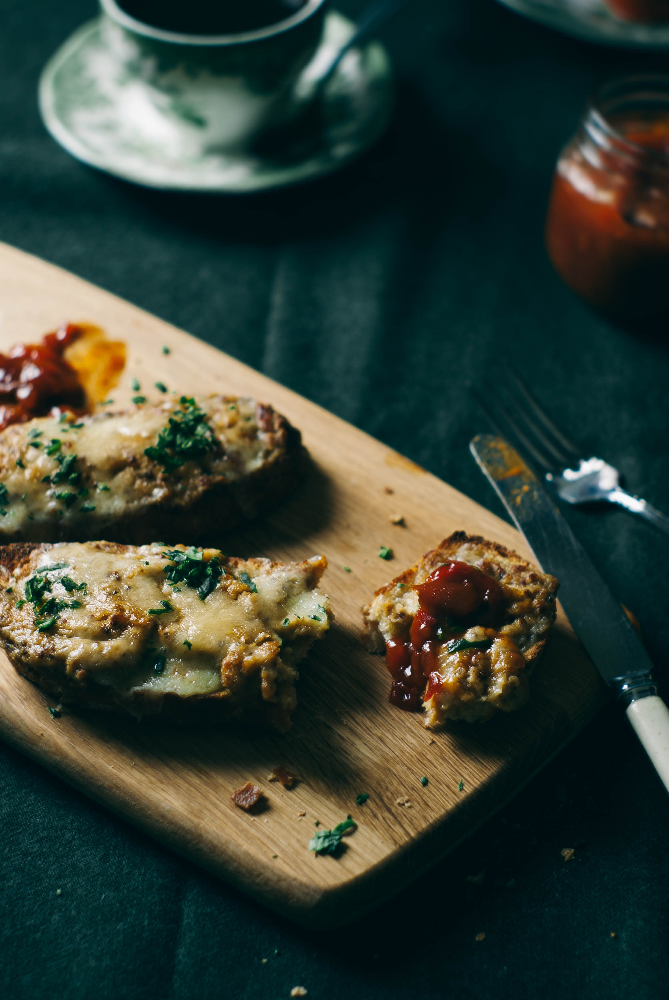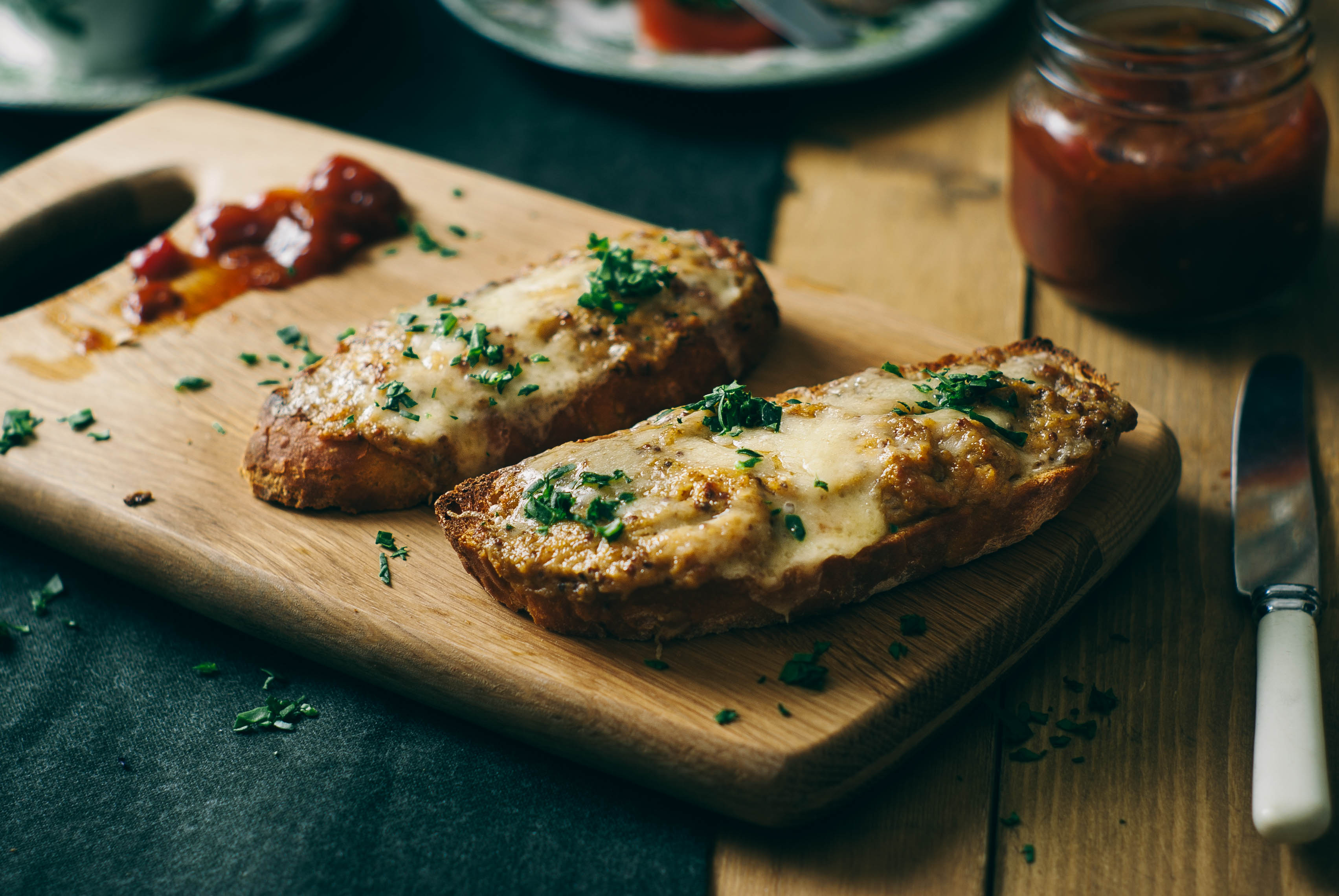 Spread the cheese mixture onto the toast and grill until brown and bubbling.