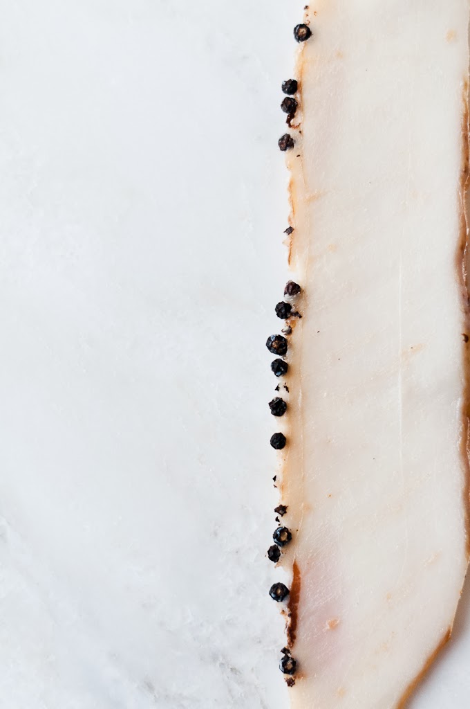Using a sharp chef knife, start mincing the lardo until you get a sort of paste. Chop the parsley very finely and then incorporate it into the creamed lardo. Do the same with the onion. You want to end up with almost a pesto of parsley, lardo and onion.