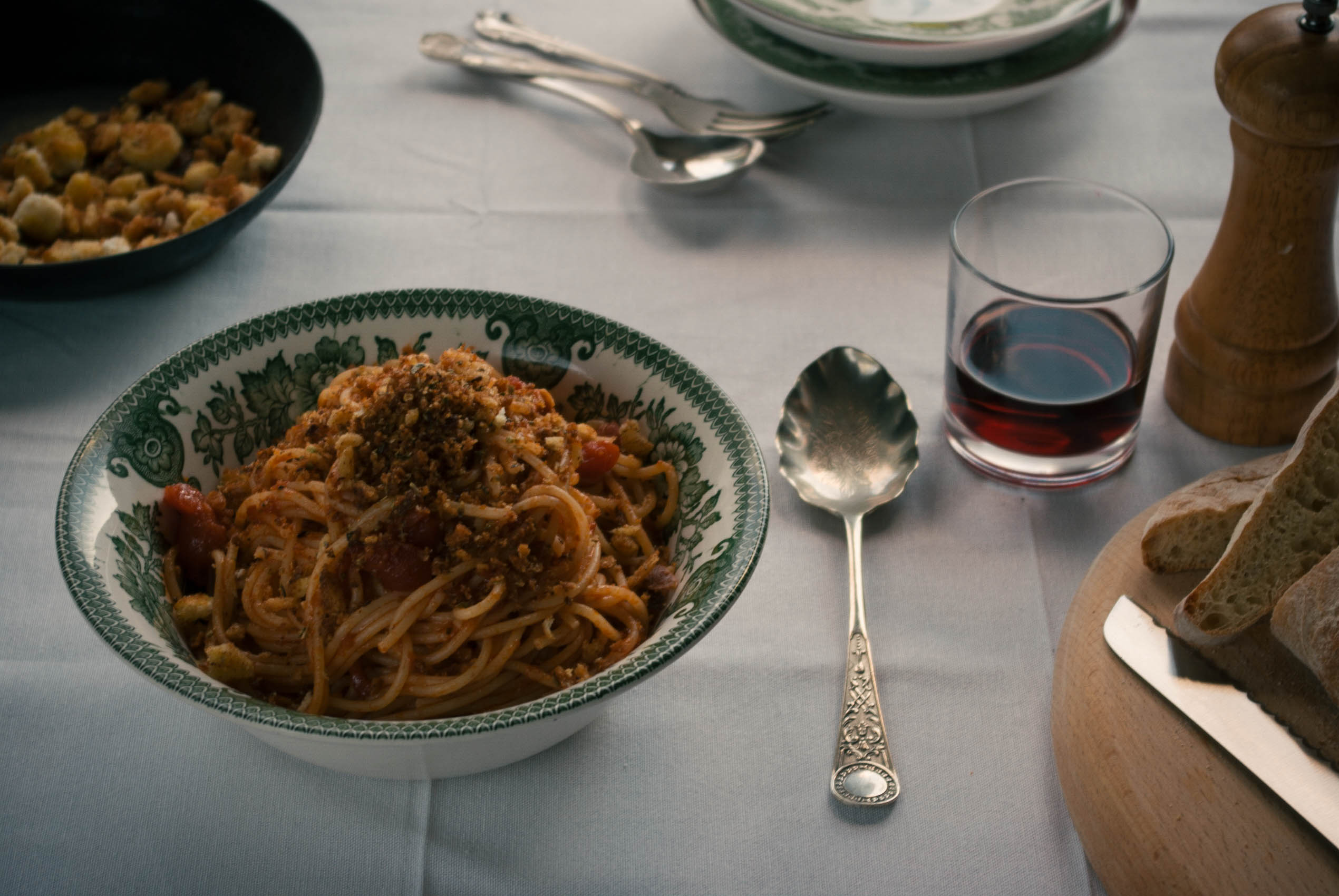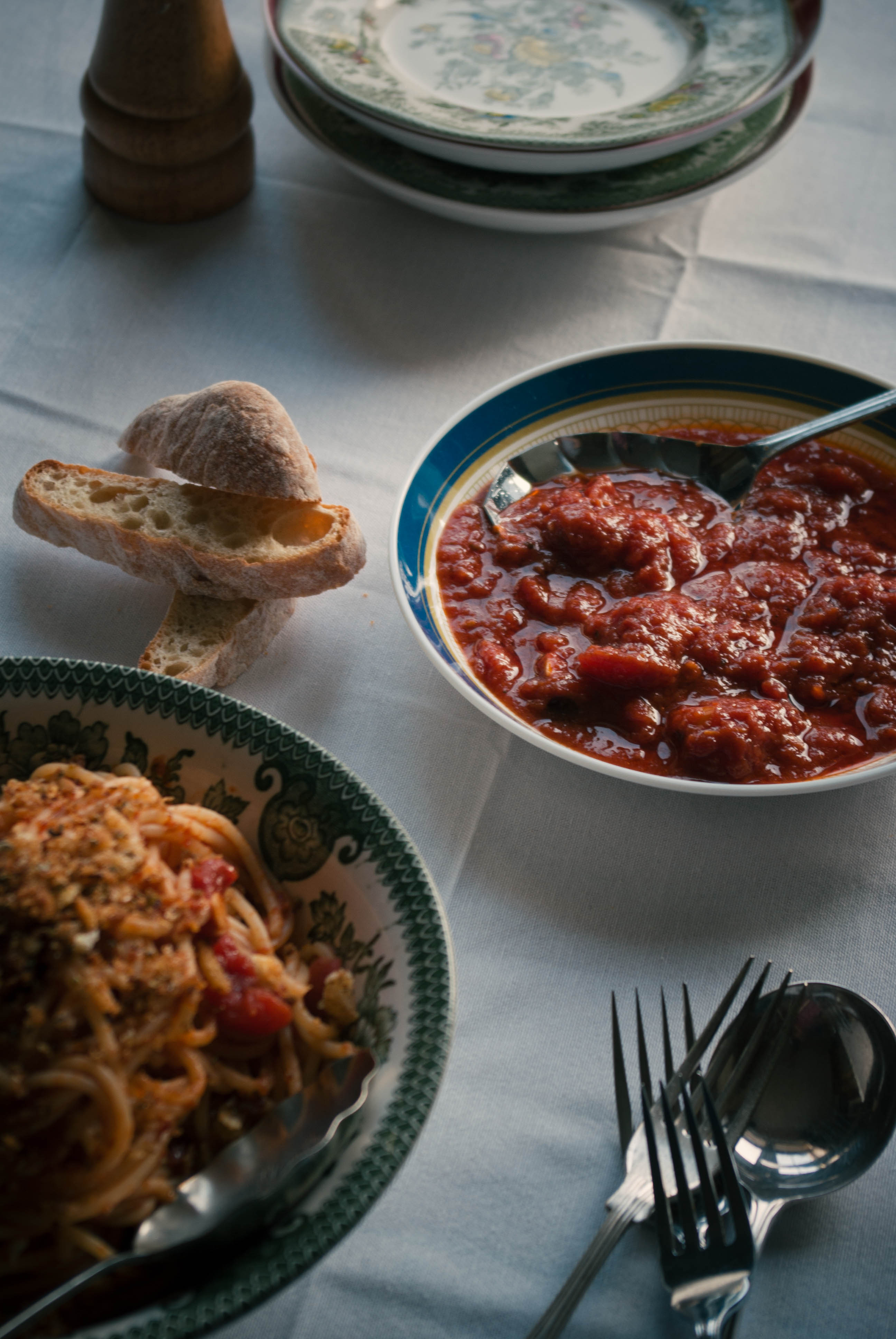 Pasta, Sugo, Bread