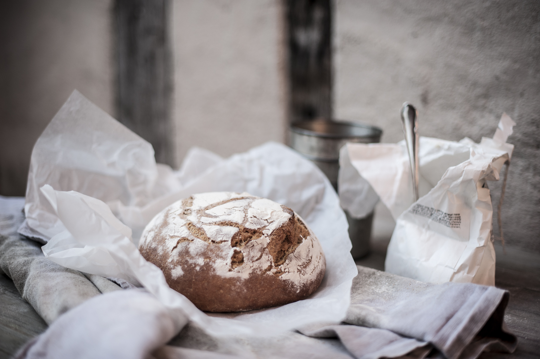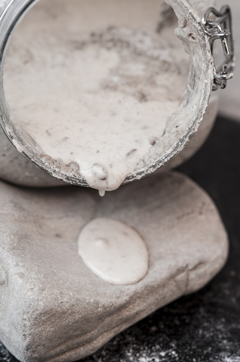 The type of flour you use is important in the process to assist with the fermentation. Unbleached, organic flour contains more micro organisms than processed flours; wholewheat and seeded flours provide the greatest variety to boost the levain.