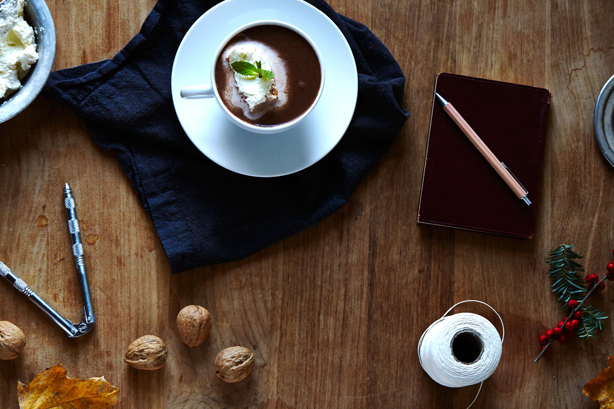 Spiced Hazelnut Hot Chocolate with Fresh Mint Whipped Cream